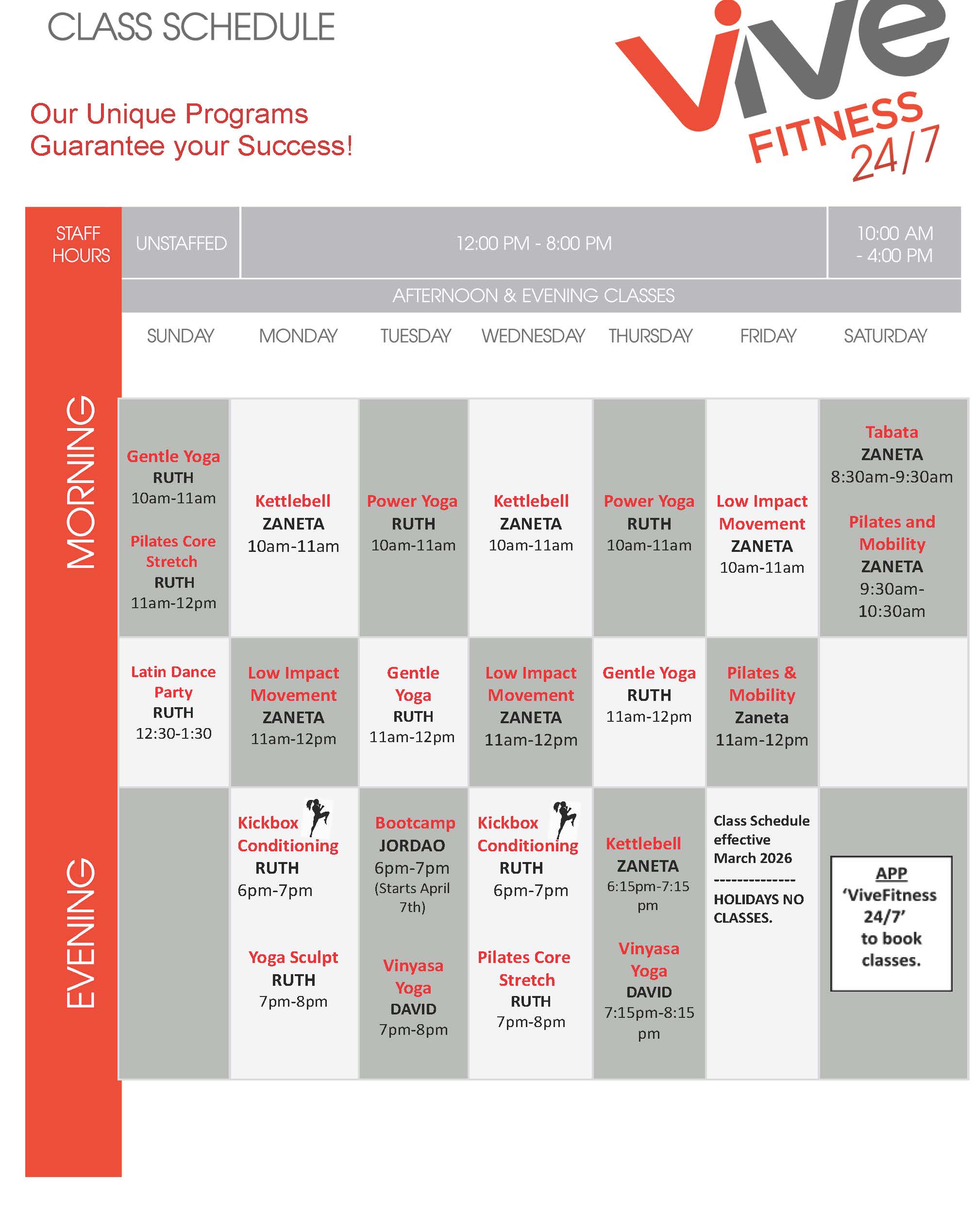 Staffed Hours Monday-Friday | 12pm - 8pm Saturday | 10am - 4pm Sundays & Holidays | Unstaffed 647.351.8483 dundas@vivefitness.com